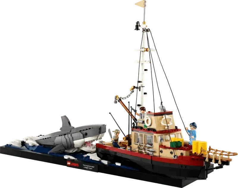 This collectible Jaws LEGO diorama set also includes 3 iconic characters – Chief Martin Brody, Matt Hooper and Sam Quint – plus an alternative display stand where the fully built Jaws shark figure can be displayed with the minifigures.
