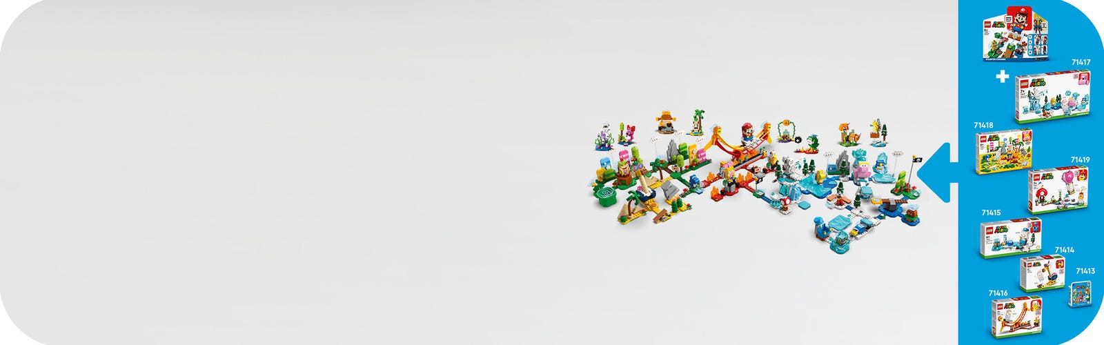 LEGO Super Mario speelgoedsets brengen Super Mario™ personages tot leven in de echte wereld. Met de startsets en uitbreidingssets kunnen bouwers hun eigen, unieke levels bedenken en aanpassen.